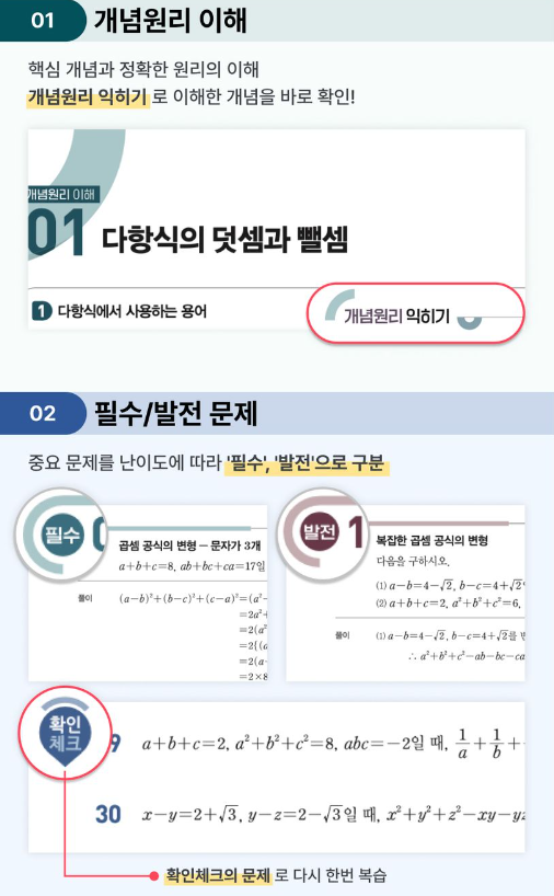 각 개념을 이해한 후, 다양한 문제 유형을 통해 실력을 확인할 수 있습니다. 이는 학생들이 다양한 문제를 접하고 해결할 수 있는 능력을 키워줍니다.