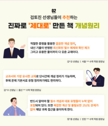 각 단원의 핵심 개념을 깔끔하게 정리하고, 이를 쉽게 이해할 수 있도록 설명해 줍니다. 심화 개념과 혼동하기 쉬운 개념, 그리고 자주 등장하는 문제의 개념을 효과적으로 학습할 수 있습니다.