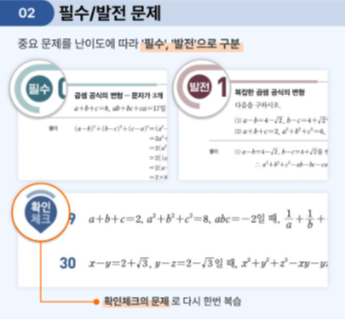 중요한 문제들을 필수 문제로, 그리고 그 중 난이도가 높은 문제들을 발전 문제로 구성하여, 핵심 개념과 문제 해결 전략을 학습하고 정리할 수 있습니다.