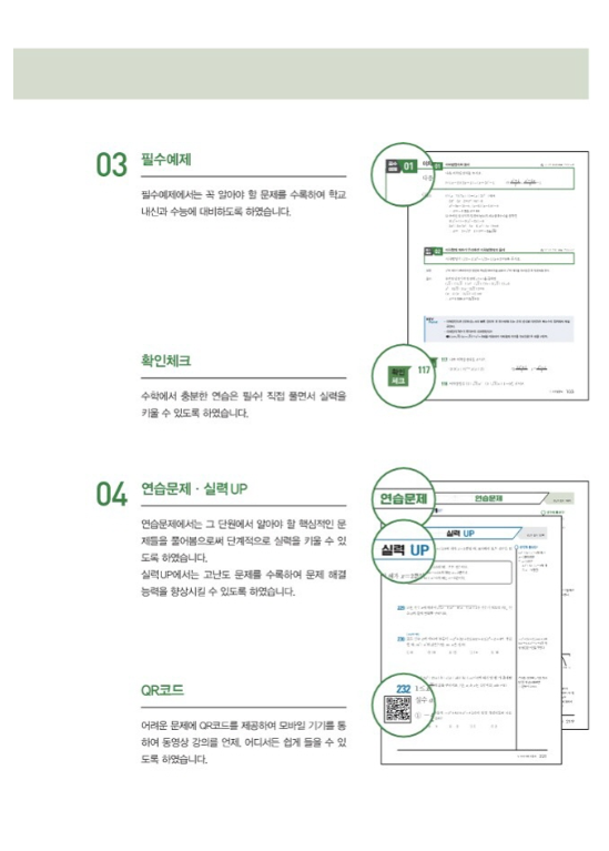 필수예제를 통해 "개념원리 수학 상"은 학교 내신과 수능 대비에 필요한 문제들을 다뤄봅니다. 이를 해결하면서 수험생들은 높은 성적을 얻을 수 있는 능력을 키울 수 있습니다.