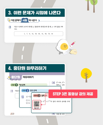 마지막으로, 서술형 대비 문제는 예제와 유제를 통해 풀이 서술의 기본기를 다진 후 시험에서 자주 출제되는 서술형 문제를 통해 학생들의 서술력을 강화할 수 있도록 구성되어 있습니다.