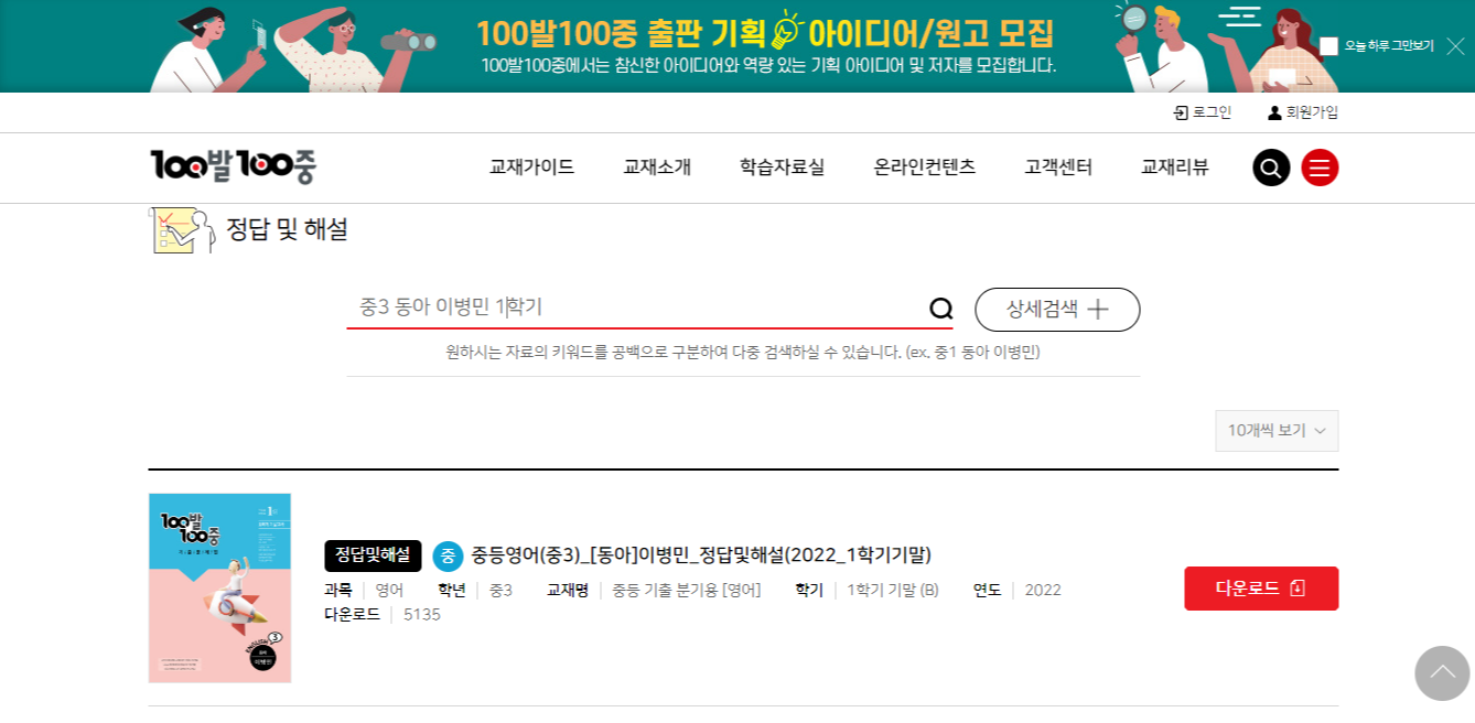 지금까지 백발백중 중2-1 영어 동아 (이병민) 답지 다운로드 방법이었습니다.