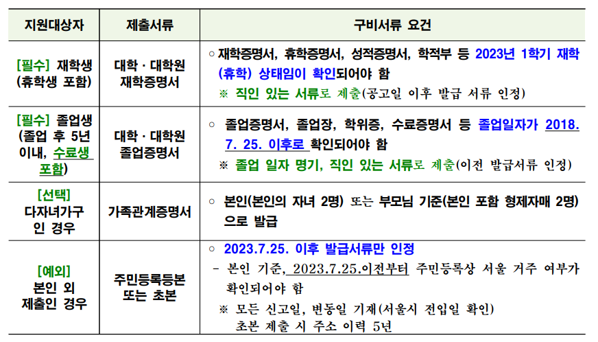 모든 서류는 공고일(7. 25.(화)) 이후 발급된 것만 인정됩니다.