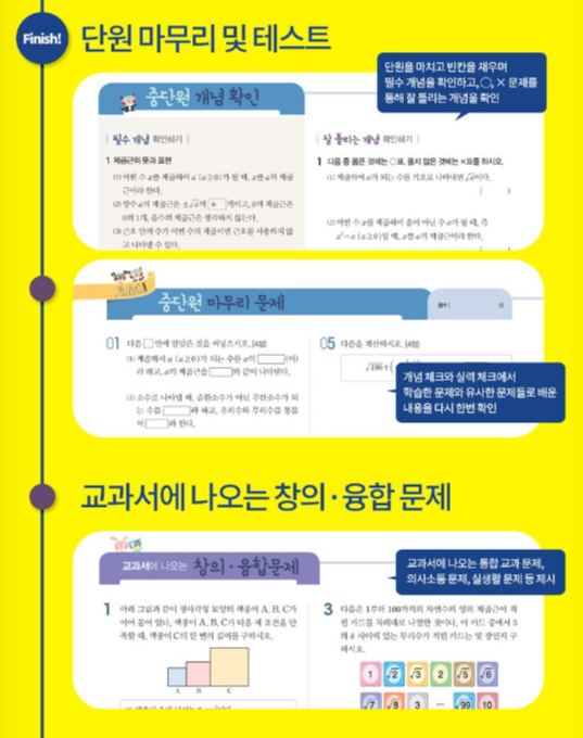 이 교재는 개념을 자연스럽게 이해하고 쉽게 익히도록 구성되어 있습니다. 단원의 배경과 수학이 실생활에 어떻게 적용되는지를 흥미롭게 다루며 다음과 같은 특징을 가지고 있습니다.