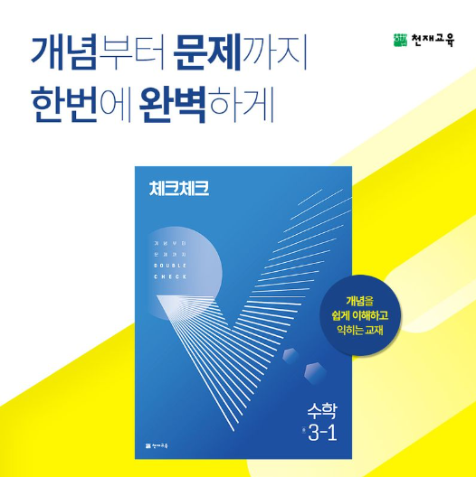 체크체크 중학수학 3-1 교재는 개념 마스터의 최강자입니다. 그 안에는 개념과 반복 학습 시스템이 담겨 있어 기본기를 확실하게 다지는 데 큰 도움이 됩니다.